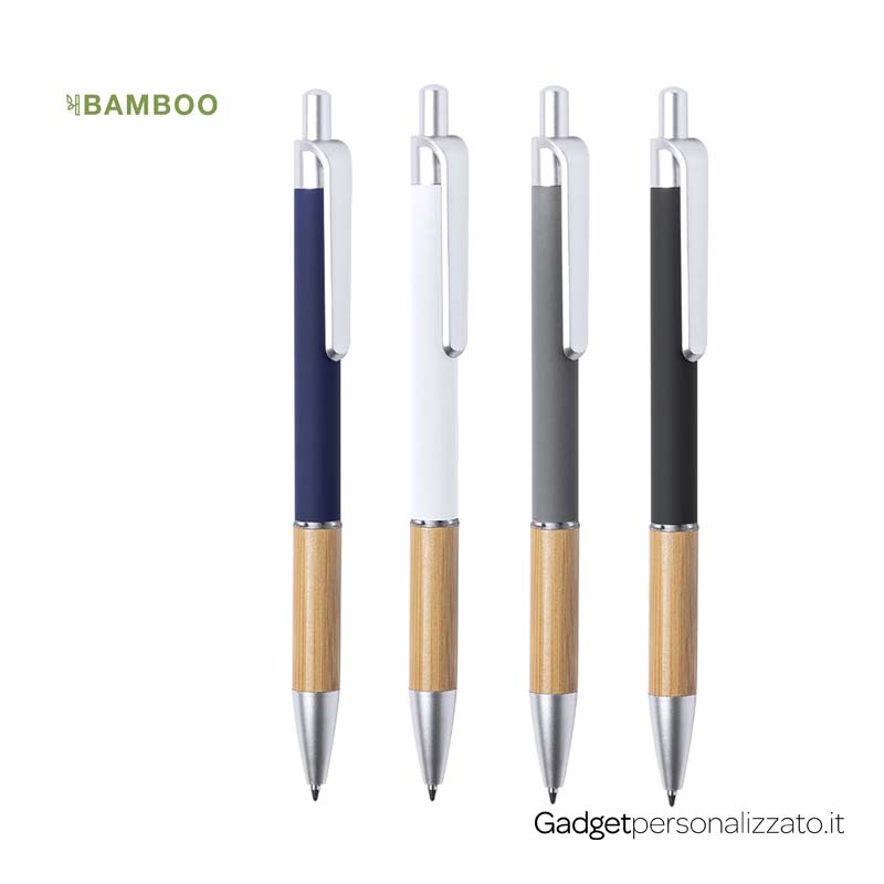 La penna promozionale è un grande classico, allora perché non distinguersi con un modello impreziosito da dettagli naturali? La penna a sfera Chiatos ha un design raffinato con fusto in alluminio colorato e impugnatura in bambù. Il gadget perfetto per scrivere storie memorabili.