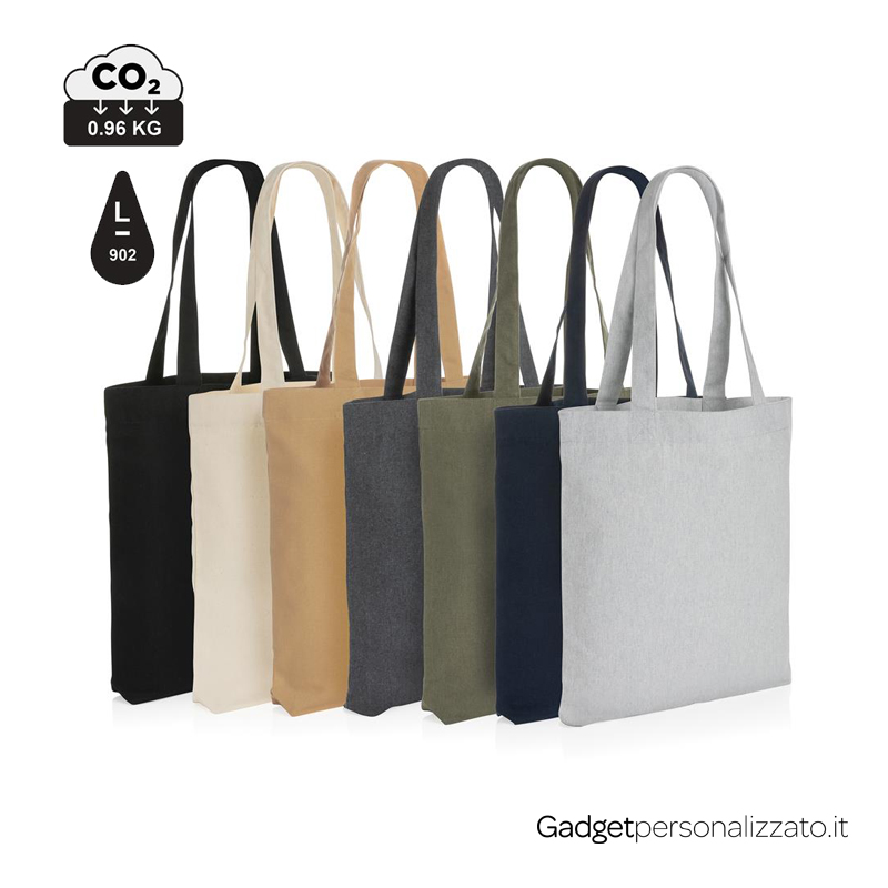 Le shopper funzionano sempre, ma quelle Impact si distinguono per stile e solidità. Nel nostro catalogo sono presenti modelli di varie forme e dimensioni, realizzati con tessuti sostenibili come la tela riciclata (cotone riciclato 70% e rPet 30%), disponibile anche nella sua variante grezza “non tinta”.