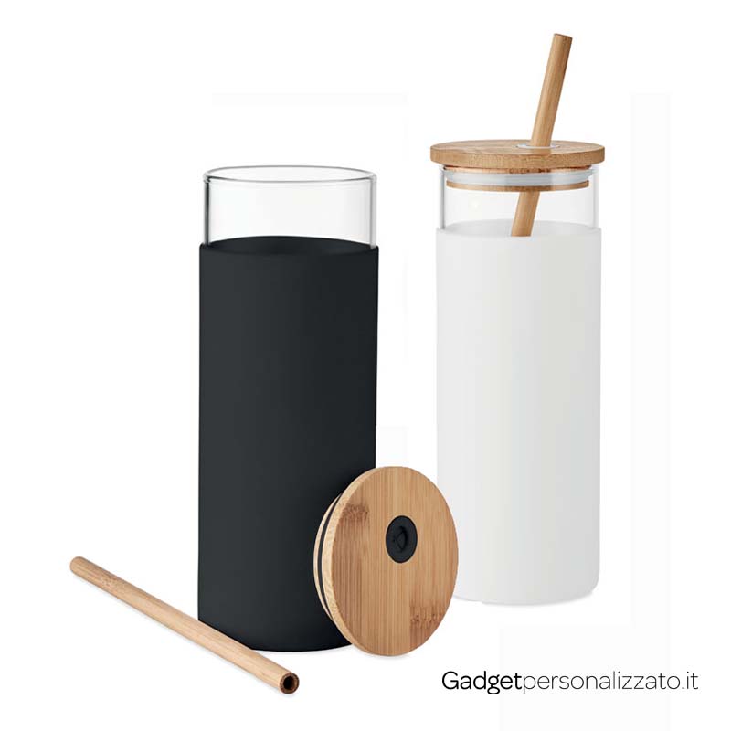 Impossibile non notarlo! Il vetro borosilicato è un vetro di alta qualità che spicca per robustezza e lucentezza. La custodia protettiva in silicone, insieme al coperchio e alla cannuccia in bambù, rendono il design del bicchiere Strass ancora più elegante e raffinato.