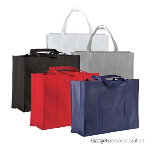 Durabilità e spazio si uniscono nella nostra shopper Maxi in TNT. Ideale per chi desidera promuovere il proprio brand attraverso caratteristiche di resistenza, concretezza e durabilità nel tempo, questa borsa capiente è un must-have per fiere ed eventi. Con questa borsa da una parte creare una connessione diretta con l’utente, dall’altra quest’ultimo diventerà portavoce attivo del tuo brand. Richiedi un campione.