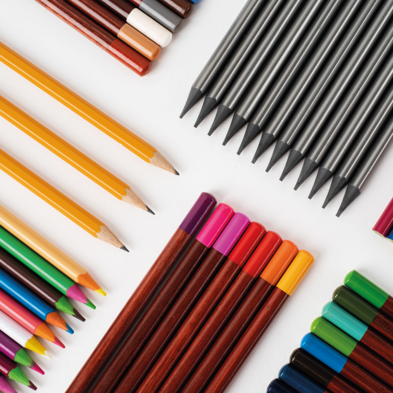 Se non le penne, allora le matite: nere, di legno naturale o coloratissime, lunghe o mini, di diversi materiali, anche green, e dalle diverse forme…non c’è che l’imbarazzo della scelta!