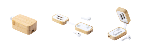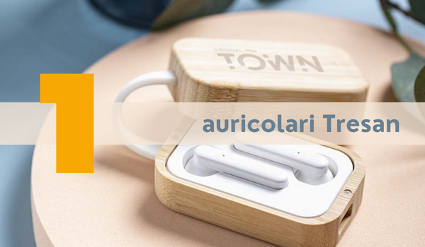 Con connessione bluetooth 5.0 e batteria al litio, gli auricolari Tresan hanno un’elegante finitura bianca in ABS e sono confezionati in una custodia di bambù con funzione di caricatore. Dal design ergonomico, sono dotati di un pulsante di controllo a sfioramento integrato.