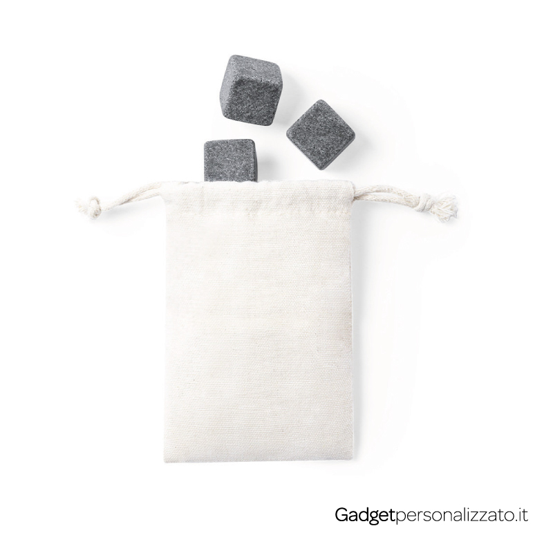 I cubetti di ghiaccio riutilizzabili in pietra naturale sono una scelta particolarmente elegante, nonché rispettosa dell’ambiente. Realizzati in pietra ollare, sono perfetti per raffreddare bevande (senza alterarne il sapore) e rappresentano un regalo sofisticato e pratico. Il sacchetto di cotone che li contiene può essere personalizzato. Ecco un oggetto ideale come regalo premium, ottimo anche per i tuoi eventi aziendali e per campagne di marketing mirate.